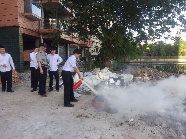 演练前,由安保人员向全体员工讲解消防安全注意事项和遇到初起火灾事故的处置流程,随后进行实战演练,由参演人员使用灭火器对初起火灾进行扑灭,安保人员对演练中不规范的动作及时进行指正。