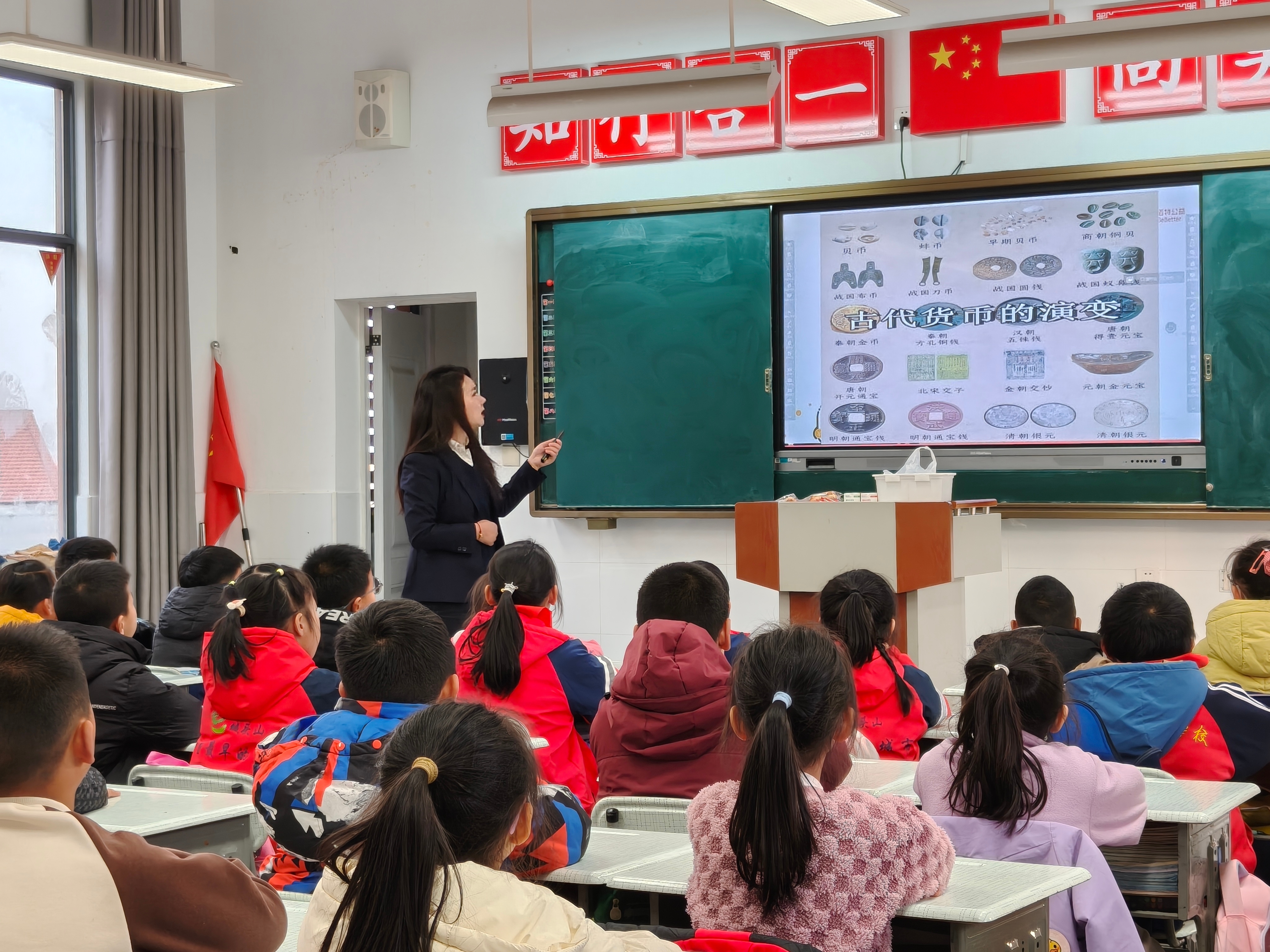 课堂上,李姝以“货币的前世今生”为切入点,通过生动的图片展示、趣味故事讲述及互动问答等形式,带领学生“穿越时空”了解货币的发展历程。从古代的贝壳货币到现代的电子支付,深入浅出的讲解让抽象的金融知识变得鲜活易懂,引发了同学们的浓厚兴趣,课堂上举手回答问题的小手此起彼伏,宛如一片“小森林”,现场气氛十分热烈。她同时叮嘱学生们,所有网络支付必须在父母的指导和确认下才能支付,千万不要相信陌生人尤其是网络上发来的“支付指令”或“转账信息”;更不要乱花零用钱,要从现在起就培养科学理财、勤俭节约的好习惯。
